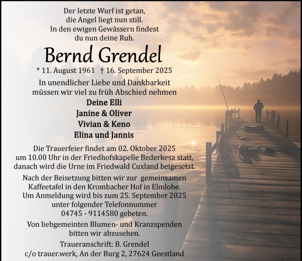 wir wünschen Ihnen für die kommende Zeit viel Kraft und dass es Ihnen gelingt, dankbar auf die positiven Erinnerungen zurückzublicken. Diese Gedenkseite möge Ihnen dabei helfen, Ihre Trauer zu teilen und das Andenken gemeinsam wachzuhalten.