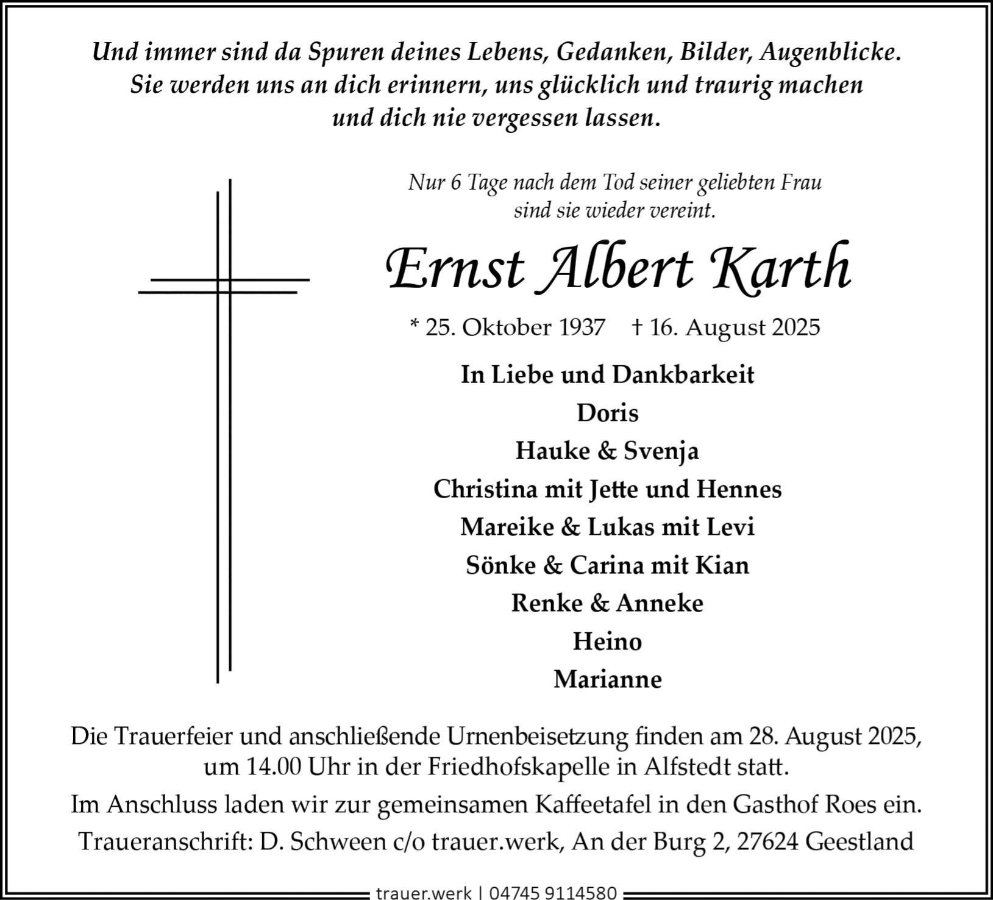 wir wünschen Ihnen von Herzen viel Kraft, dass Sie Menschen um sich haben, die Ihnen in dieser schweren Zeit beistehen und Halt geben. Zusätzlich können Sie auf dieser Gedenkseite Erinnerungen teilen und so das Andenken gemeinsam wachhalten.