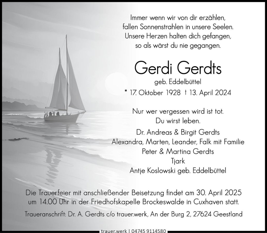 gestorben am 13. April 2025 in Geestland