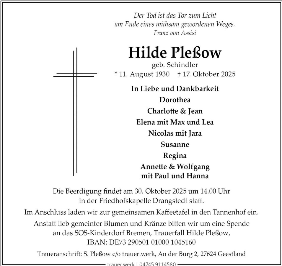 Hilde Pleßowgestorben am 17. Oktober 2025